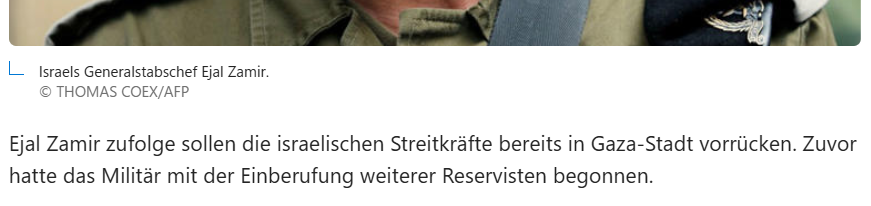 Die IDF hatte ein Gefecht verloren. Offensichtlich mit Verlusten, die sich nicht mehr verheimlichen lassen. Die IDF muss sich umgruppieren. Wahrscheinlich brauchen Sie weitere Soldaten, die sie mobil machen müssen. Was bedeutet das für die Familien der Geiseln die können sich freuen, denn solange der Vormarsch der IDF stockt, gibt es keinen Grund für Hamas Geiseln zu töten. Stand 18.09. verschiedene Quellen Bomben über Bomben auf das Zentrum. von Gaza Stadt.