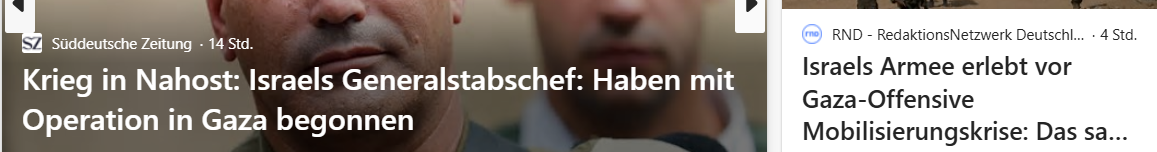 Laut dem israelischen Generalstabschef rückt die Mörderbande IDF in Gaza vor. so wie es die Hamas mindestens eine Woche vorher erwartet hat. Und wie weit sind sind sie gekommen. Ich weiß es nicht. Militärzensur ! Schließlich soll kein Demokrat wissen wie schnell die Terroristen vorgerückt sind. ES git auch andere Quellen