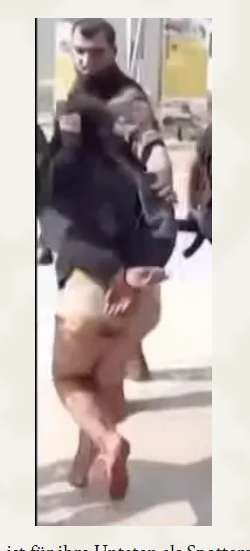 אבל ראשית, למה אני קורא למנהיג מור? בתמונה, אנחנו רואים... מילת נ'. צבע עור: שחור. עכשיו, יש הבדל גדול מאוד בין חמאס לקואליציה האדומה-ירוקה הגרמנית לשעבר. ברור שמנהיג חמאס גאה להיות אדם שחור, גאה בצבע עורו. וכאן הדברים הופכים ללא הגיוניים. אם הוא באמת המנהיג, הוא צריך להיראות כמו אבו עביידה. כלומר, רעול פנים לחלוטין. אולי הוא גם רעול פנים כאדם שחור. הוא כנראה יסיר את מסכת הלטקס שלו מפניו בקרוב. אחר כך הוא...