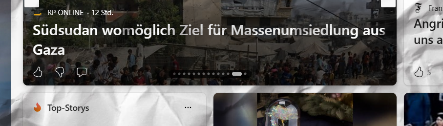 "Israel will nach den Worten von Ministerpräsident Benjamin Netanjahu mit der geplanten neuen Offensive in Gaza erreichen, dass die Bewohner des Küstenstreifens in andere Länder umsiedeln. Ein Zielland könnte der Südsudan sein. Medienberichte und hochrangige Kontakte zwischen Israel und dem Südsudan schüren den Verdacht, dass eine Umsiedlung in das ostafrikanische Land vorbereitet wird."